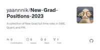 GitHub - Pasindu3683/New-Grad-Positions-2023: A collection of New Grad full time roles in SWE, Quant, and PM. · GitHub