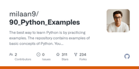 GitHub - milaan9/90_Python_Examples: The best way to learn Python is by practicing examples. The repository contains examples of basic concepts of Python. You are advised to take the references from these examples and try them on your own.