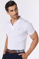 Featuring a white polo t-shirt in giza cotton base. Perfect attire for a casual wear, exuding charm and elegance.