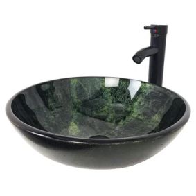 GLOBAOSALU Green Glass Vessel Sink With Faucet And Pop-Up Drain Combo 17 Inch Round Tempered Glass Basin Bathroom Bowl Sinks Above Counter Sink Bowls For Small Vanities Top Mount Easy Installation - Amazon.com