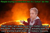 Iโd just like to interject for a moment. What youโre refering to as Linux, is in fact, GNU/Linux, or as Iโve recently taken to calling it, GNU plus Linux. Linux is not an operating system unto itself, but rather another free component of a fully functioning GNU system made useful by the GNU corelibs, shell utilities and vital system components comprising a full OS as defined by POSIX.