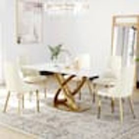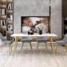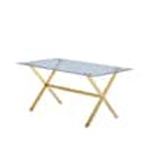 Options from $409.00Sumdeal 63" Glass Dining Table Set for 6,Gold Base Dining Room Table with 6 Gold Leg C Shape Chairs