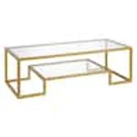 Glass coffee table, modern rectangular gold coffee table for living room