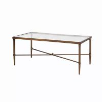 Bring some refined elegance to your home with our Glass and Metal Rectangle Porter Coffee Table. You'll fall in love with the tempered glass tabletop and sleek, bronze base. Table measures 44L x 24W x 18.25H in. Crafted of metal and tempered glass Bronze base finish Tempered glass tabletop Features crisscross design Weight: 31.75 lbs. Some assembly required Not intended for commercial use Care: Dust with a soft, dry cloth. This item is available at Kirklands.com only, not available in stores. Please note: this item cannot be shipped to APO/FPO addresses. WARNING: Cancer and Reproductive Harm -