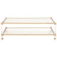 Casper Rectangular Coffee Table in gold features rich gold stainless steel and acrylic coffee table, glass top, contemporary design. Model 201-CT