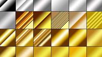Collection of golden metallic gradient swatches for backgrounds, cover, frame, banner, label, ribbon, coin, label, flyer, card, poster, card, certificate, medal and other design.
