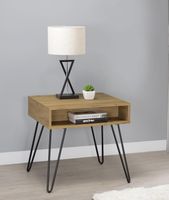 Coaster® Fanning Golden Oak End Table with Black Hairpin Leg