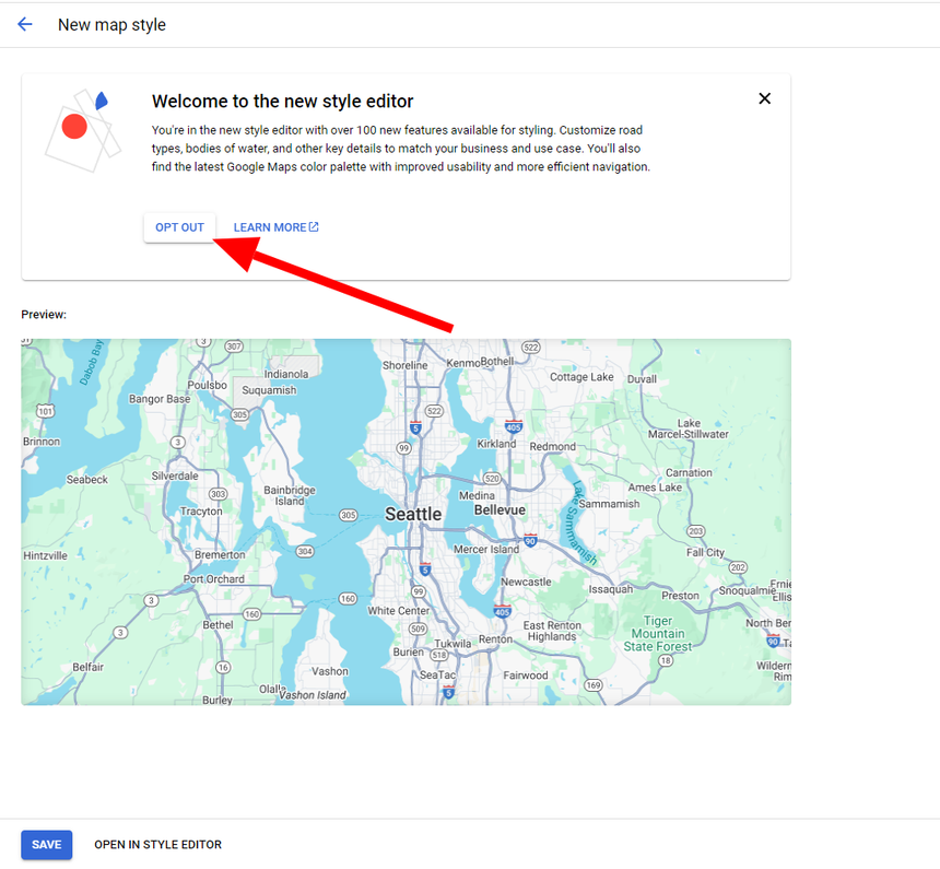 • Go to the Google Maps dashboard map style editor