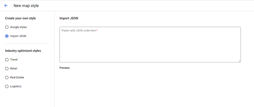 To create a new map style, paste the JSON into the 'Import JSON' option.