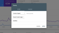You’ll have to choose either Matches regex or Doesn’t match regex – you can’t use both at the same time. This is where the GSC API came in handy as it allows joining regex strings.