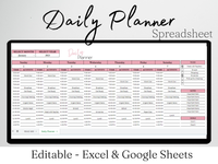 The template includes a sheet for each month, and each sheet automatically aligns the days to the corresponding week day in a calendar grid. Additionally, you can enter up to five tasks in each day, and track completion via a percentage and progress bar. It can be reused year over year simply by cloning the blank template and changing the year.