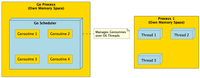 - Go can run multiple goroutines on one OS thread, it's managed by Go scheduler.