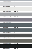 the color of the grout. Final installed color may vary due · to differing installation techniques and jobsite conditions. Quartz* #101 · Oyster Gray · #386 · Mushroom · #135 · New Taupe · #185 · Natural Gray · #09 · Delorean Gray* #165 · Pewter · #19 ·