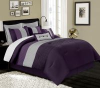 8-Piece Luxury Pleated Bedding Purple Lavender Gray Striped Comforter Set | eBay