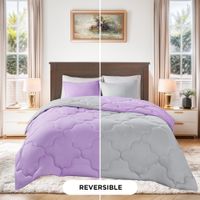 Infuse your bedroom with a touch of elegance and contemporary charm with the 7-Piece Comforter Set, featuring a soothing lavender gray base complemented by bold black printed designs. Made from ultra-soft Microsoft fabric, this set promises a cozy and stylish sleep experience.Available DesignLavender Gray Base with Black Print: A sophisticated lavender gray background accented by striking black patterns, perfect for a refined and modern aesthetic.Set Includes1 Comforter: Luxuriously plush and adorned with an eye-catching printed design to elevate your bedroom style.1 Flat Sheet: Smooth and exp