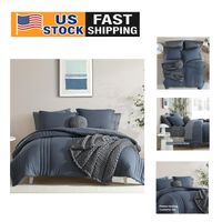 Queen Comforter Set: 7 Piece Blue Gray Bedding with All-Season Comfort | eBay