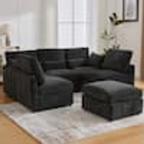 From $399.99Linsy Home 106" Plush Corduroy Sleeper Sofa Bed with Storage Chaise, Pull Out Couch Bed with USB, Cup Holder, Side Pocket, U Shaped Sectional Couches for Living Room, Apartment, Green ... Homfa 4 Seater Sofa Couches with 2 Ottoman Chaise, Comfy Corduroy Sofa with USB Port & Pillows for Living Room, Dark Gray