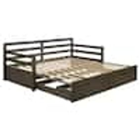 This wooden daybed is crafted from linen, with smooth rail arms for a modern look, while soft fabrics add comfort. Designed with style and function in mind, it features a fold-down trundle bed and drawers to sleep up to three. It can be used as a sofa during the day, and can sleep three people at night when the casters are pulled out, which is very practical. Convenient accommodation for overnight guests is also available. The drawer can be used to store some personal items. Our daybeds combine function and style to complement any home decor.