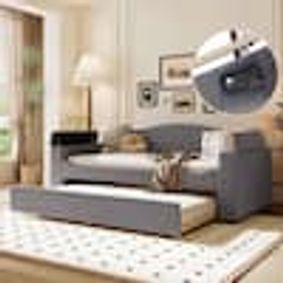 Giantex Upholstered Twin Daybed with Trundle, Modern Trundle Bed with Button Tufted Backrest and Wooden Slat Support, Twin Size Day Bed for Living Room Guest Room, No Box Spring Needed, Grey : Amazon.ca: Home