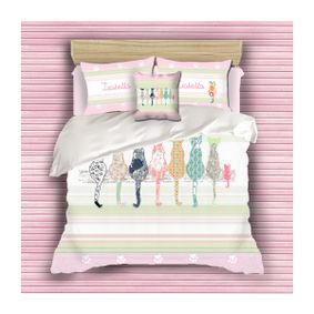 Double, queen and king sets include: 1 comforter, 2 pillow shams, 2 square cushions and 1 breakfast cushion