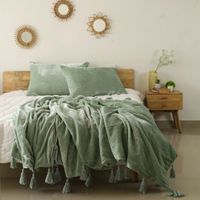 Home Accessories Luxury Cotton Velvet Fern Green Bed Throw 140x240cm