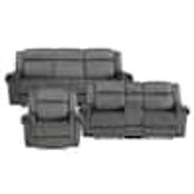 Legend Power Leather Reclining Sofa Set. Classic Gray. Includes Reclining Sofa, Reclining Glider Loveseat, and Glider Recliner.