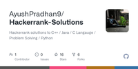 GitHub - AyushPradhan9/Hackerrank-Solutions: Hackerrank solutions to C++ / Java / C Langauge / Problem Solving / Python · GitHub