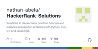 GitHub - nathan-abela/HackerRank-Solutions: Solutions to HackerRank practice, tutorials and interview preparation problems with Python, SQL, C# and JavaScript. · GitHub