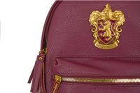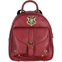 This high quality Harry Potter mini backpack features a gold-tone Hogwarts Crest emblem. This faux leather bag includes a zippered main compartment with an interior open slip pocket and zippered pocket, a front pocket with magnetic snap closure, adjustable shoulder straps, a loop top handle, and gold-tone accents.