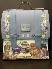 Celebrate the brightest witch of her age with a backpack inspired by Hermione Granger’s world. This pastel blue Loungefly design features an enchanting floral trim and a detailed scene of books, potions, and Crookshanks perched among magical supplies. A gold-tone wand-shaped handle adds the perfect finishing touch, making this piece feel straight out of the Hogwarts library.Thoughtfully structured with magnetic straps, interior storage, and Loungefly’s signature hardware, it’s a practical and spellbinding addition to any collection.Exclusively at Books-A-Million. A must for witches, wizards, a