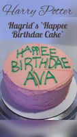 But the way Hagrid mispells "Happy Birthday" in the movie portrays him as illiterate. Also, the book cake is just chocolate frosting. Will we see a variation of the cake, or do we think they'll stick to the movie design for iconography?