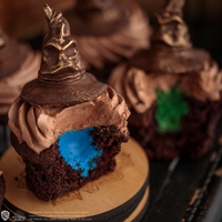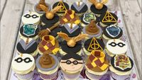All aboard! Next stop, Hogsmeade Station! Feeling peckish, dear? Enjoy an array of magically delicious cupcakes topped with icons reminiscent of that memorable first train ride to Hogwarts School of Witchcraft and Wizardry™. Can be enjoyed by witches, wizards and muggles alike.Available in our most popular flavour options, please note that flavours for cupcakes change the colours of the cupcake and icing.These pair well with: Hogwarts Invitation Letter CookiesSorting Hat CupcakesHagrid's Birthday CakeRavenclaw House CakeGryffindor House CakeHufflepuff House CakeSlytherin House Cake Note: 4-day lead-time.