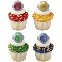 Harry Potter Rings Cupcake Toppers - 12 Count · Use these top cupcakes and give the kids a momento to wear home. Contains 3 rings from each of the 4 houses. Click here for a chocolate lollipop mold that will fir the theme.