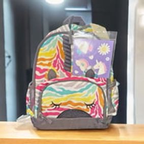 Large backpacks hold a lunch bag, a large notebook, two small notebooks, several books and a water bottle. Personalization is available for an additional cost. Please note, personalization placement varies and may not appear as shown. Personalization may cover all or part of the print. Harry Potter characters, names and related indicia are © & ™ Warner Bros Entertainment Inc.