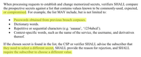When processing requests to establish and change memorized secrets, verifiers SHALL compare the prospective secrets against a list that contains values known to be commonly-used, expected, or compromised. For example, the list MAY include, but is not limited to: Passwords obtained from previous breach corpuses.