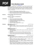 The document is a resume for Heath Maverick Adams that summarizes his background and experience in cybersecurity. It outlines his objective of being a cybersecurity professional with a focus on ethical hacking, penetration testing, and network ...