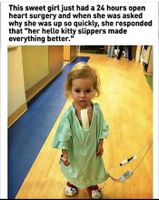 April 12, 2019 - Tough recovery and road ahead, but the surgeries work some magic much like those slippers ... Crying and smiling at the same time. What a brave strong little lady you are. My prayers will be with you🙏😇 ... I hope 5his sweet girl has a great life going forward. ... How precious! ... She's adorable and she is strong. ... Не впервой вижу это фото, одно из самых тяжёлых что я видел. ... That girl got more balls than any man I know. ... I'm gonna have to tattoo hello kitty slippers on my feet.