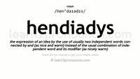Hendiadys pronunciation | How to pronounce Hendiadys in English?/hen`daɪədɪs/Meaning of Hendiadys | What is Hendiadys?(1) (n.) A figure in which the idea is ...