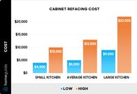Kitchen cabinet refacing costs are impacted by a range of factors including but not limited to kitchen size, number and size of cabinets, new cabinets and add-ons such as extra hardware for storage. Request a consultation with a Home Depot Installer to get a detailed quote for your kitchen ...