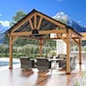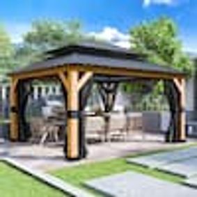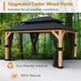 homedepot.com › p › JOYSIDE-13-ft-x-11-ft-Outdoor-Patio-Cedar-Wood-Frame-Hardtop-Gazebo-with-Double-Galvanized-Steel-Roof-and-Mosquito-Netting-A01T-THD › 318082561