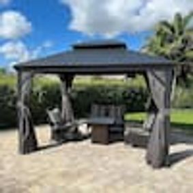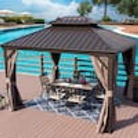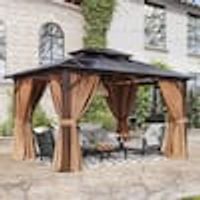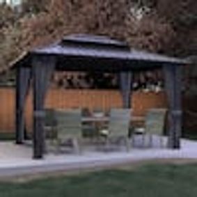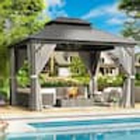 homedepot.com › p › Sizzim-10-ft-x-12-ft-Hardtop-Outdoor-Double-Roof-Gazebo-with-Netting-and-Curtains-for-Backyard-G30002 › 323143524