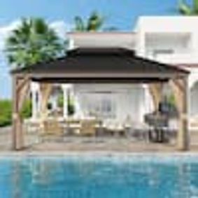 homedepot.com › p › Clihome-10-ft-x-12-ft-Permanent-Outdoor-Gazebo-with-Poly-carbonate-Double-Roof-Curtain-and-Net-Wood-Looking-CL-DOLS022 › 328069507