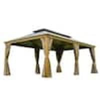 JOYSIDE 13 ft. x 11 ft. Outdoor Patio Cedar Wood Frame Hardtop Gazebo with Double Galvanized Steel Roof and Mosquito Netting A01T-THD - The Home Depot