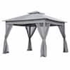 10 ft x 12 ft Permanent Gazebo this patio gazebo provides 120 square feet is enough to accommodate 4-6 people for various outdoor activities.Constructed with an aluminum frame for enjoying the covered outdoors in all seasons, this gazebo has a sturdy rust-resistant powder-coated steel roof that will stand the test of time. The classic gable roof design provides just the right amount of air circulation while keeping out the occasional inclement weather. This permanent gazebo become a perfect choice for outdoor barbecue,party or daily relaxation with your family and friends.