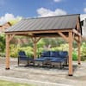 homedepot.com › p › JOYSIDE-11-ft-x-10-ft-Solid-Cedar-Wood-Outdoor-Patio-Gazebo-with-Black-Galvanized-Steel-Roof-and-Privacy-Curtain-PWHH-A08-1012 › 320384434