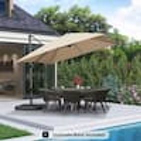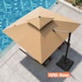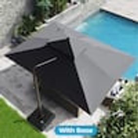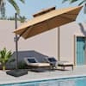 The best-rated product in Patio Umbrellas is the 10 ft. x 10 ft. Square Two-Tier Top Rotation Outdoor Cantilever Patio Umbrella with Cover in Gray.