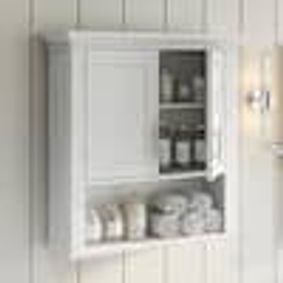 With its sleek modern design, the Glacier Bay Shaker Style Wall Cabinet is a valuable storage solution that has a timeless and classic look. The wall-mounted cabinet has a mix of open and concealed storage. Inside the cabinet's doors, an adjustable shelf makes it easy to store taller bottles. Assembly is easy, and the cabinet is ideal for any storage and organization project inspired by extra time spent relaxing around the house or working from home.
