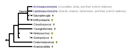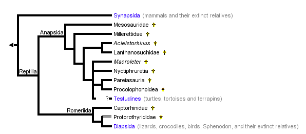 Here, you see that turtles and mammals are an off-shoot of Diapsida. So dinosaurs are not mammals and there are not closely related to turtles. Now if you click on Diapsida you will find ...