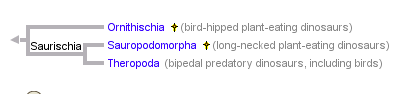 the Archosauromorpha which contains all crocodiles, birds and dinosaurs. You can keep going to find Therapoda which contains many dinosaurs and birds. You can keep going like this for yourself and discover the entire tree of life!