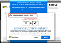 I'm sorry to hear that you have a malware problem. The Windows Defender Security Notification that is locking up your computer is a scam that tries to trick you into calling a fake customer support number. You should not call the number or follow any instructions from the scammers. Instead, you should try to remove the malware from your computer as soon as possible.